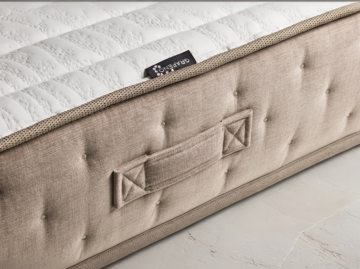 El diseño de este producto es elegante y funcional, con un acabado tapa a tapa en ambas caras que le da un toque sofisticado. La Visco Coolgraph es una apuesta segura por un descanso confortable ya que actúa de termo-reguladora. La platabanda con diseño capitoné añade un detalle estético atractivo, mientras que las asas en ambos lados facilitan su manejo. Con una altura final de aproximadamente 26 cm, combina estilo y comodidad para adaptarse a cualquier espacio.